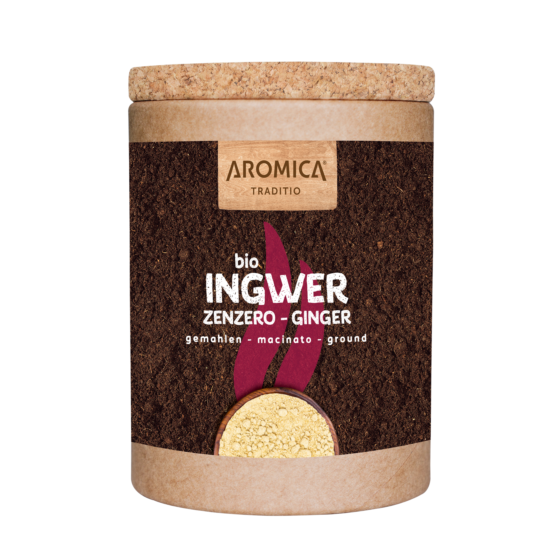 AROMICA® Bio Ingwer gemahlen ist perfekt zum Würzen und Verfeinern von Hauptspeisen, Beilagen, Gemüsegerichten und Desserts, verleiht jedem Gericht eine warme, würzige Note.