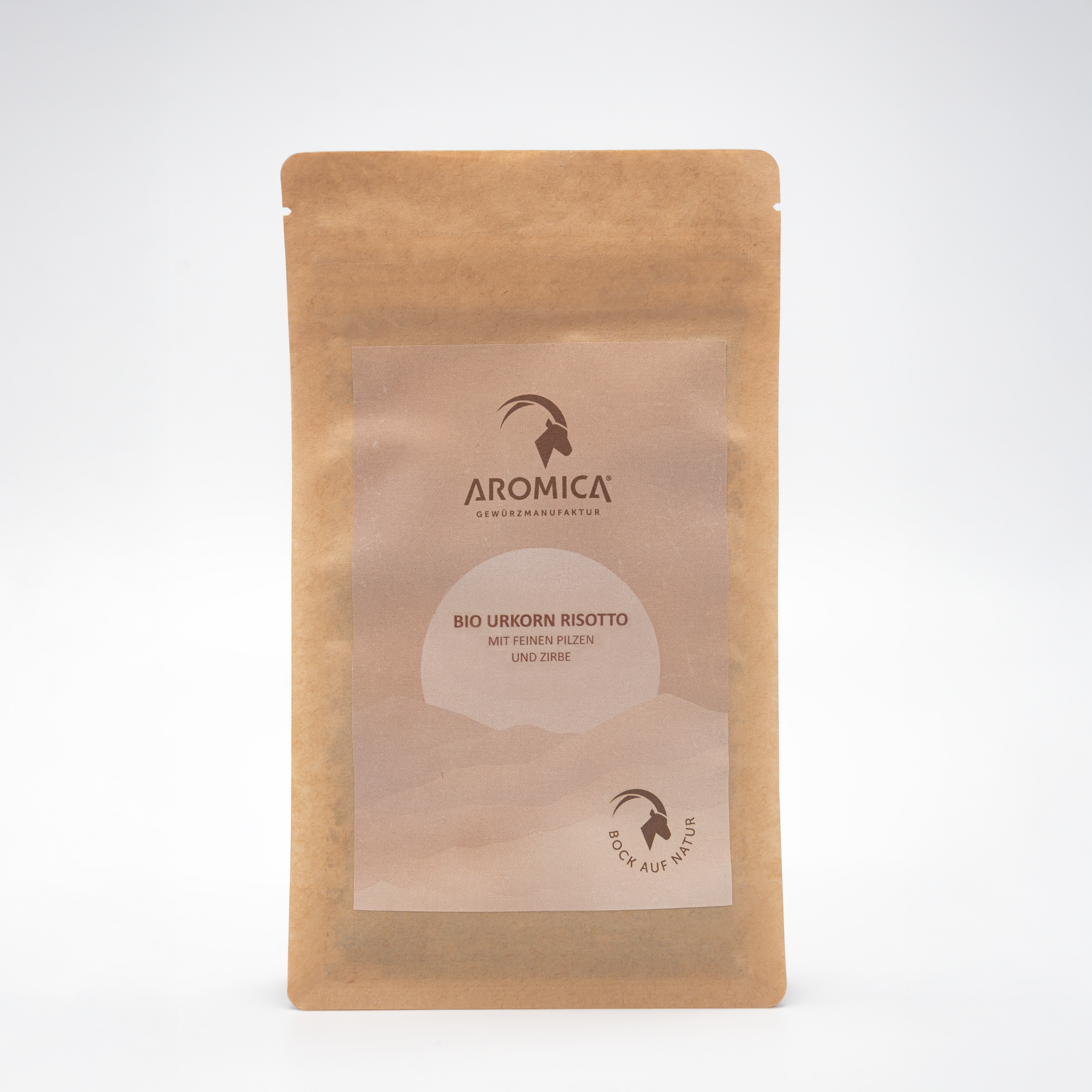 AROMICA Bio Urkorn Risotto ist schnell und einfach zubereitet mit feinen Pilzen und der besonderen Note von Zirbe. Dank des Urkorns, einer ursprünglichen Urform des Weizens, bietet dieses Risotto nicht nur einen unverwechselbaren Geschmack, sondern auch wertvolle Nährstoffe. Ein gesunder und leckerer Genuss für jeden Tag.