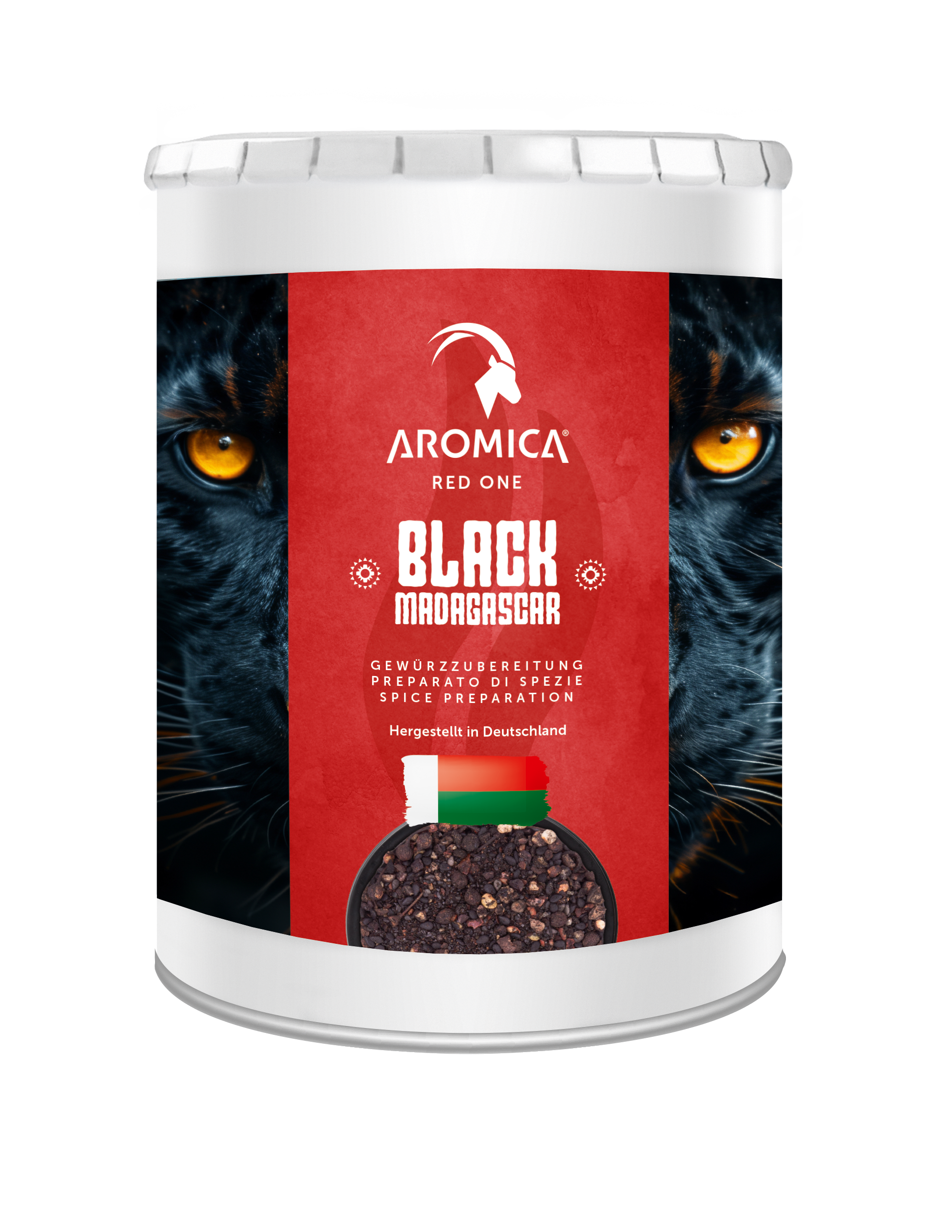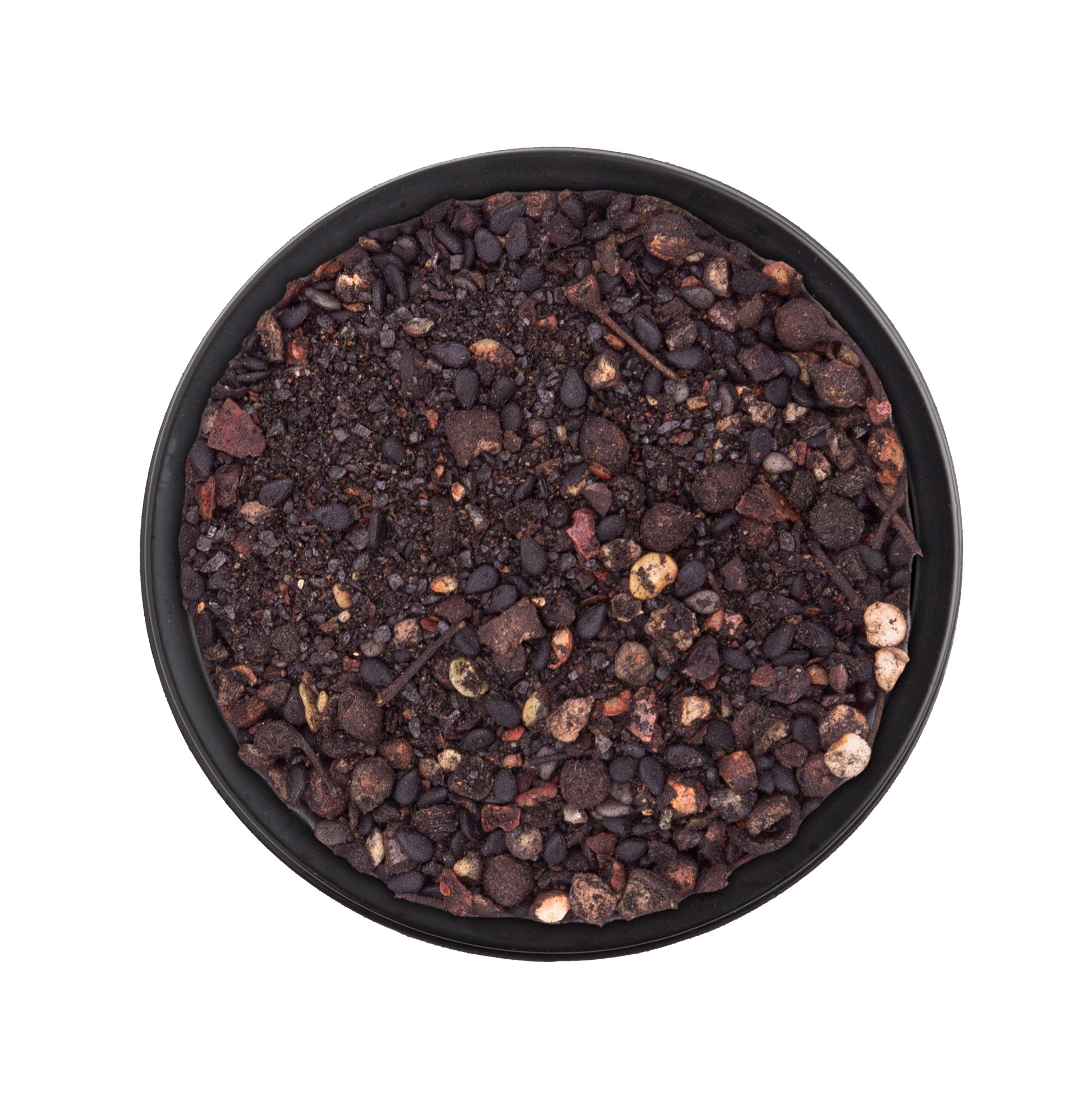Meersalz, Madagaskar Urwald-Bourbonpfeffer, SESAM schwarz, Piment, Bhutanpfeffer, Chili, Knoblauch schwarz fermentiert, glutenfreieHAFERfaser, Farbstoff: Pflanzenkohle, Rapsöl, Zimt, natürliches Pfefferaroma, Raucharoma, Schwarzkümmel, Zitronenextrakt.