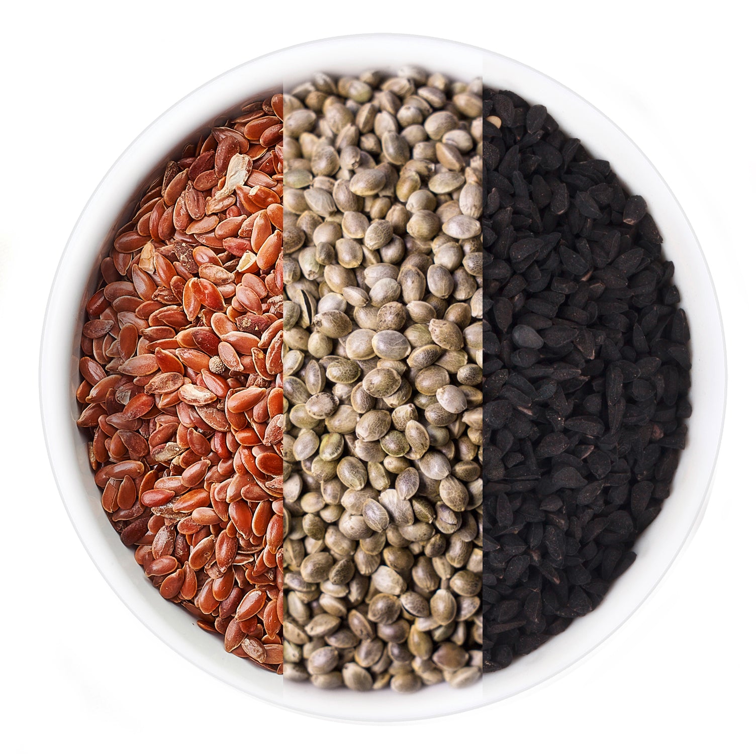 Leinöl (70%), Hanföl (29,2%), Schwarzkümmelöl (0,8%).