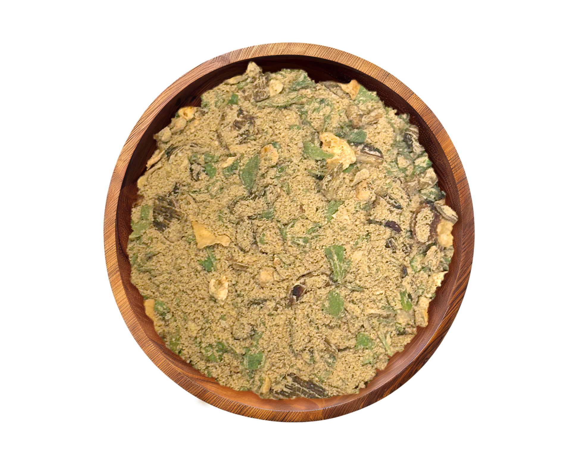 Pilzmischung 36% in veränderlichen Gewichtsanteilen (Steinpilze, Champignons), Speisesalz, natürliches Aroma, Maisstärke, Petersilie, Knoblauch, Zwiebel, glutenfreie HAFERfaser, Säuerungsmittel: Zitronensäure.