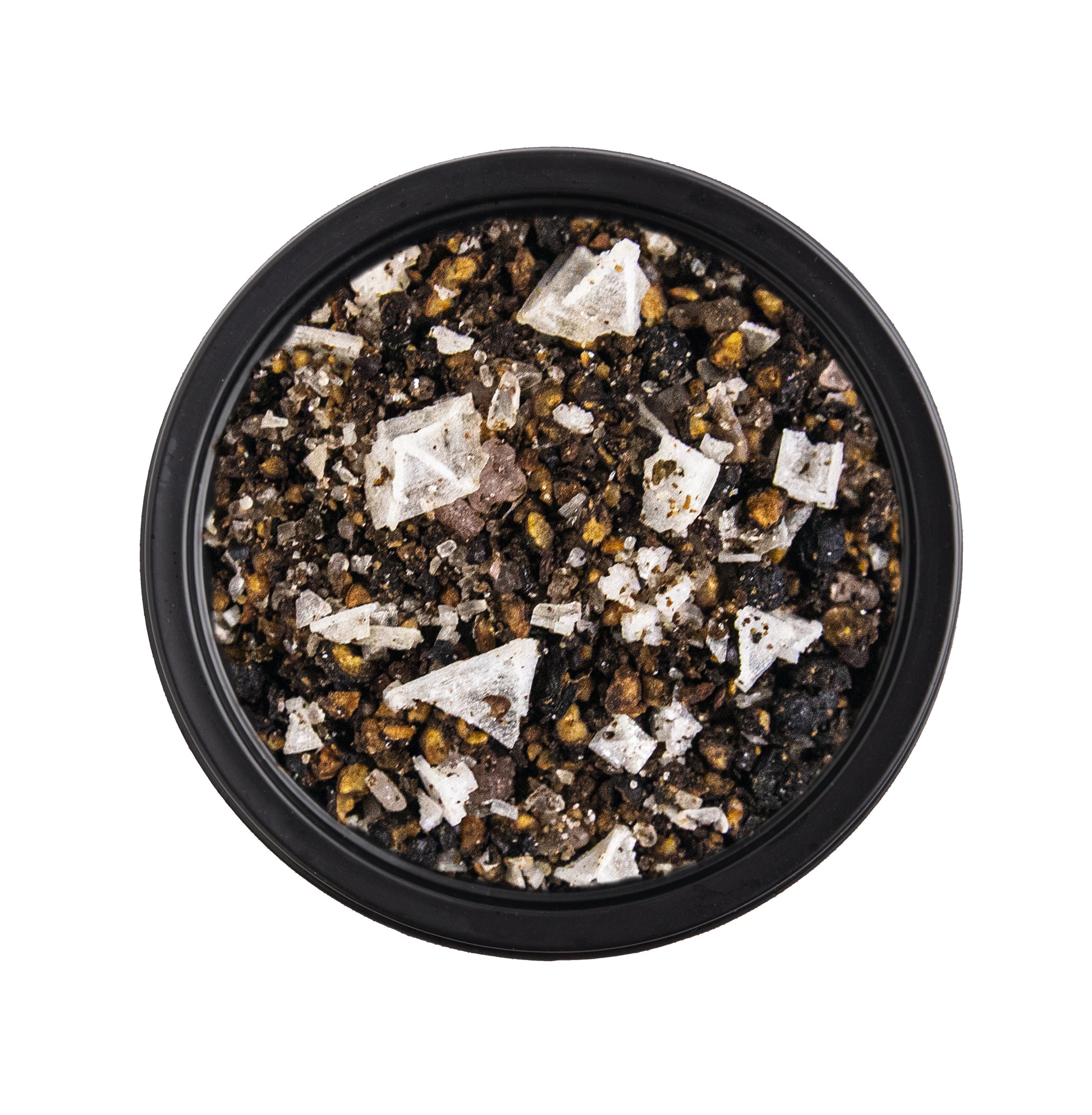 Whiskey Pfeffer (schwarzer Pfeffer, Bourbon Whiskey), Pyramidensalz, Rotweinsalz (Salz, Rotwein), Meersalz, BIO Lebensmittelfarbe Grün.